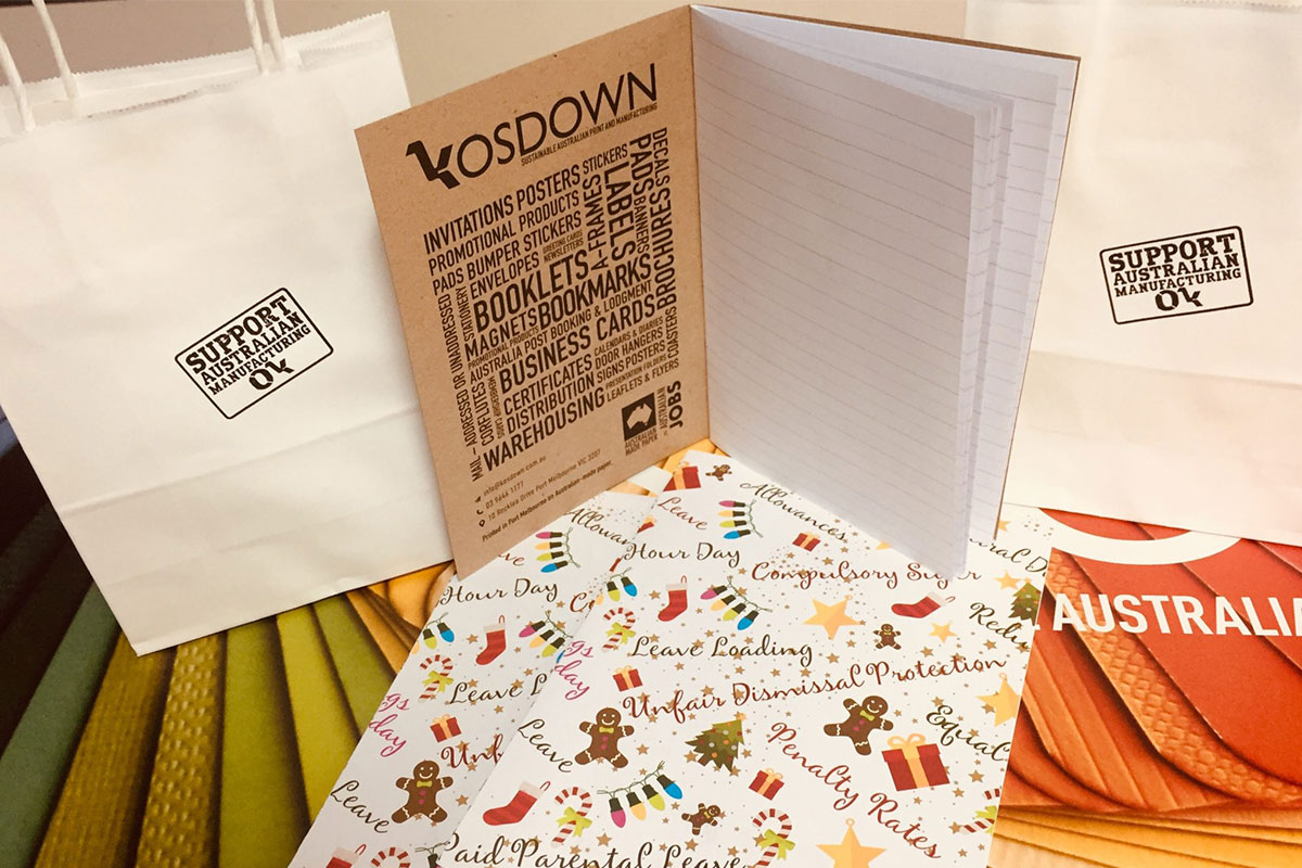 Kosdown is one of the few local on-shore printers fully committed to keeping jobs, manufacturing and skills within Australia. We also strongly support responsible forestry and local paper makers.